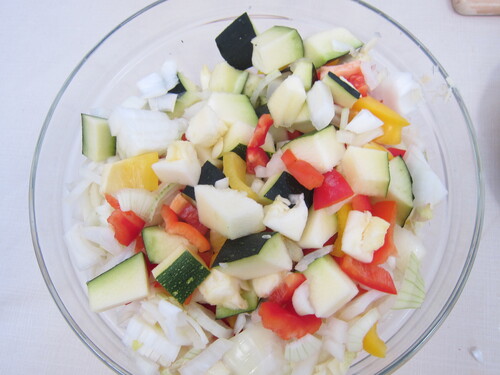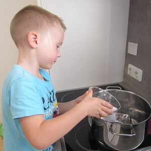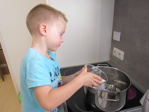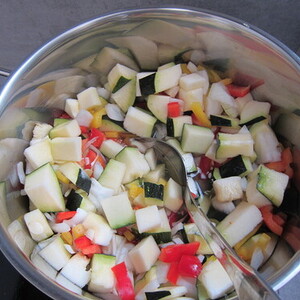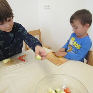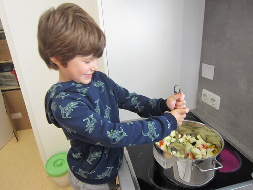 Zucchinigemüse wird in der Pandagruppe gekocht