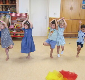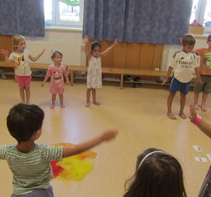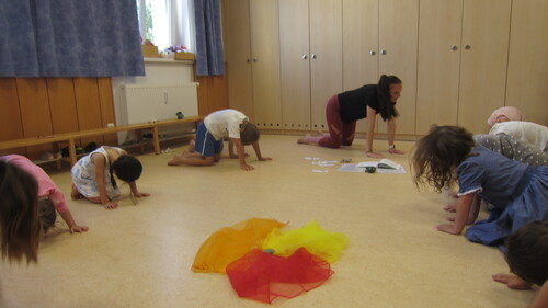 Unter diesem Motto wurden in dieser Woche neue Kompetenzressourcen genutzt: Integrationskraft Regina stellte ihr Können im Bereich Yoga unter Beweis. Ob Baum, Hund, Schwan oder Hase – die Kinder machten alle Figuren fleißig und mit großer Genauigkeit mit.