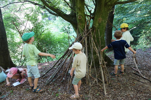 So oder so ähnlich klang es am Montagvormittag auf dem Spielplatz in der Nähe des Kindergartens St. Berthold, den die Kinder der Fischegruppe gemeinsam mit Pädagogin Elfriede erkundeten.