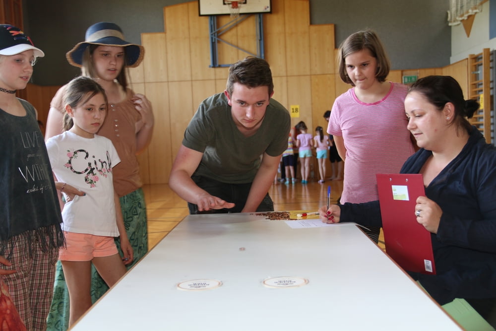 Nach einem Startgottesdienst mit Pastoralassistentin Patrizia Wohlmacher begannen die Spiele. Mit viel Wissen, Geschicklichkeit und Teamgeist wurden die 21 verschiedenen Stationen (u.a. Erbsen fangen, Schatzsuche, kirchliche Fragen, …) bestens bewältigt.