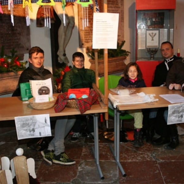MinistrantInnen und Pfarrgemeinderat sammeln für den Erhalt der Doblkapelle am Kunsthandwerksmarkt am 15.11. und 16.11.2014 zu den Bildern