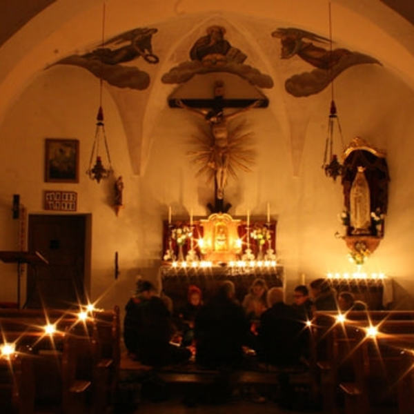 MinistrantInnenstunde am 19.12.2014 Mit Fackeln wanderten die MinistrantInnen von der Wirtskapelle zur Doblkapelle um bei Kerzenlicht mit Gesängen aus Taizé zu beten. Danach stärkten sich die MinistrantInnen - diesmal bei H. Markus im Pfarrbüro - mit Tee und Keksen. zu den Bildern: MinistrantInnenstunde am 19.12.2014